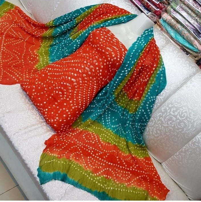 Color : Orange 🧡🍊Shirt with (Multicolor Chunri Dupatta)