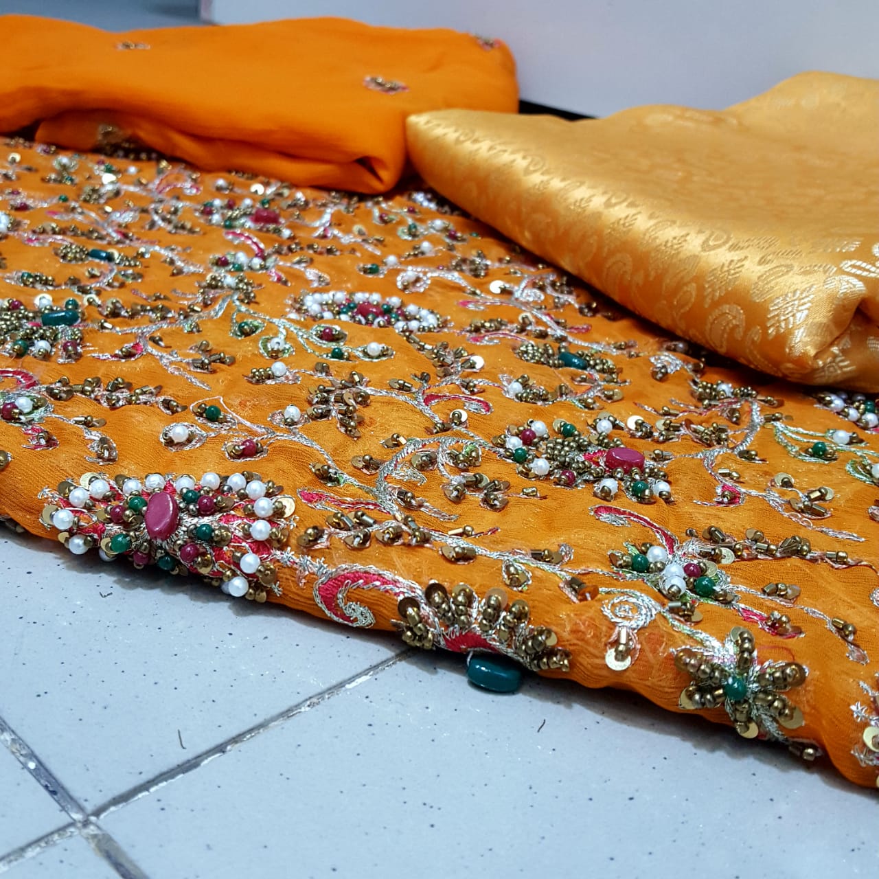 Luxury Handmade Cut Dana Work Unstitched Dress šš
