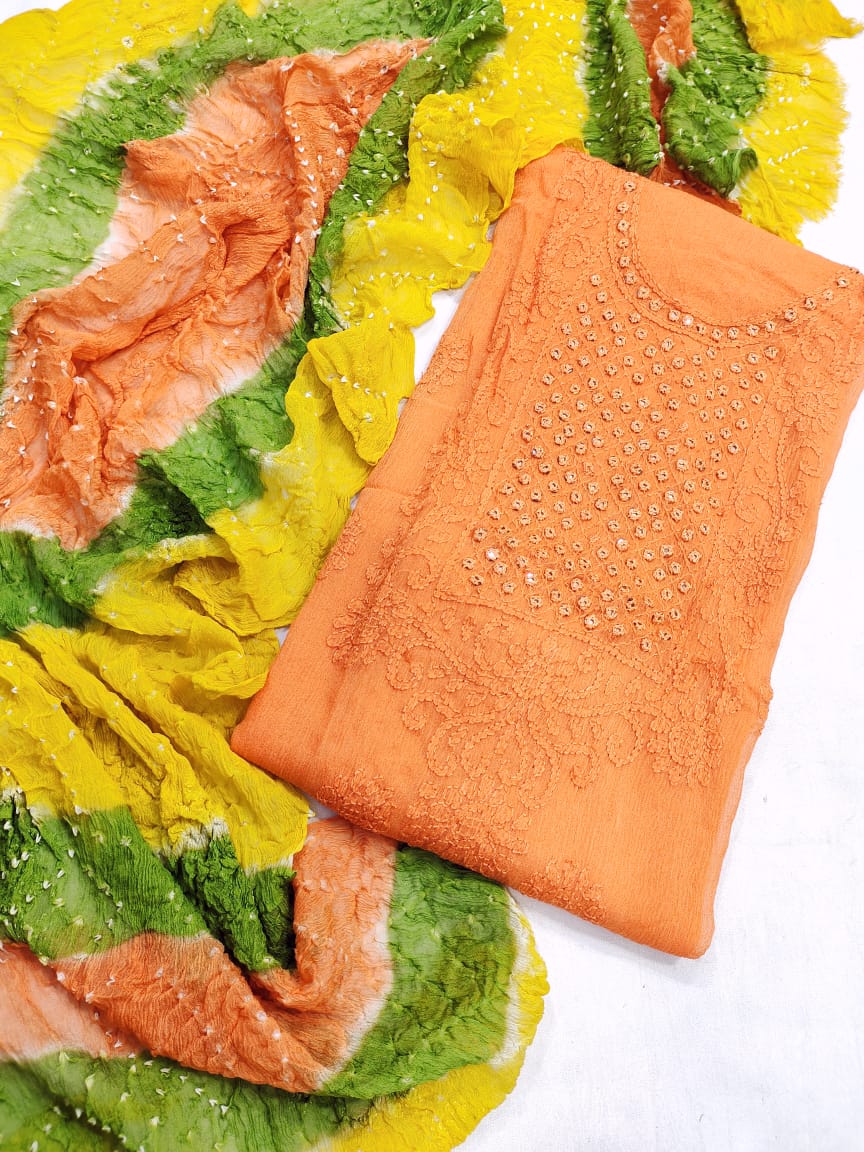 Chicken Kari with Mirror work Handmade Shirt with Multicolor Chunri Dupatta 2 piece dress 👗👚
