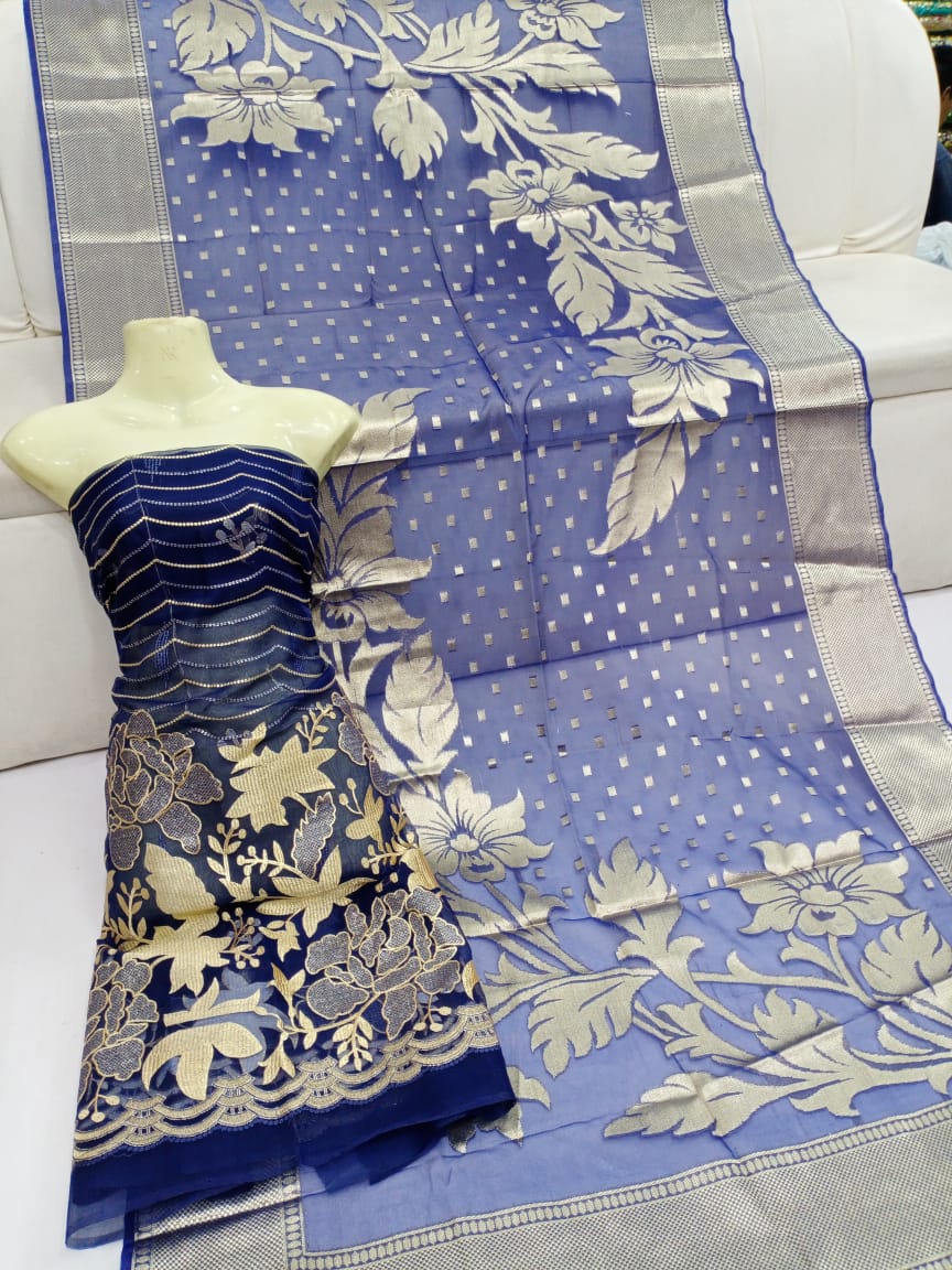 Tilla Work Embroidered Banarsi Organza Shirt with Broshia Organza Dupatta