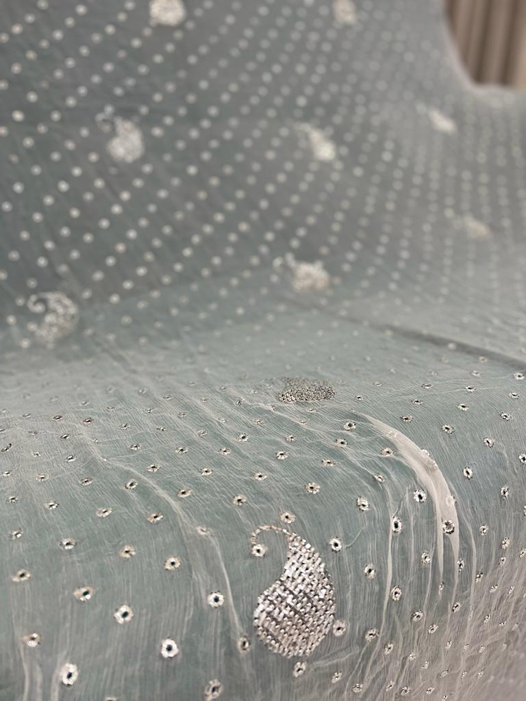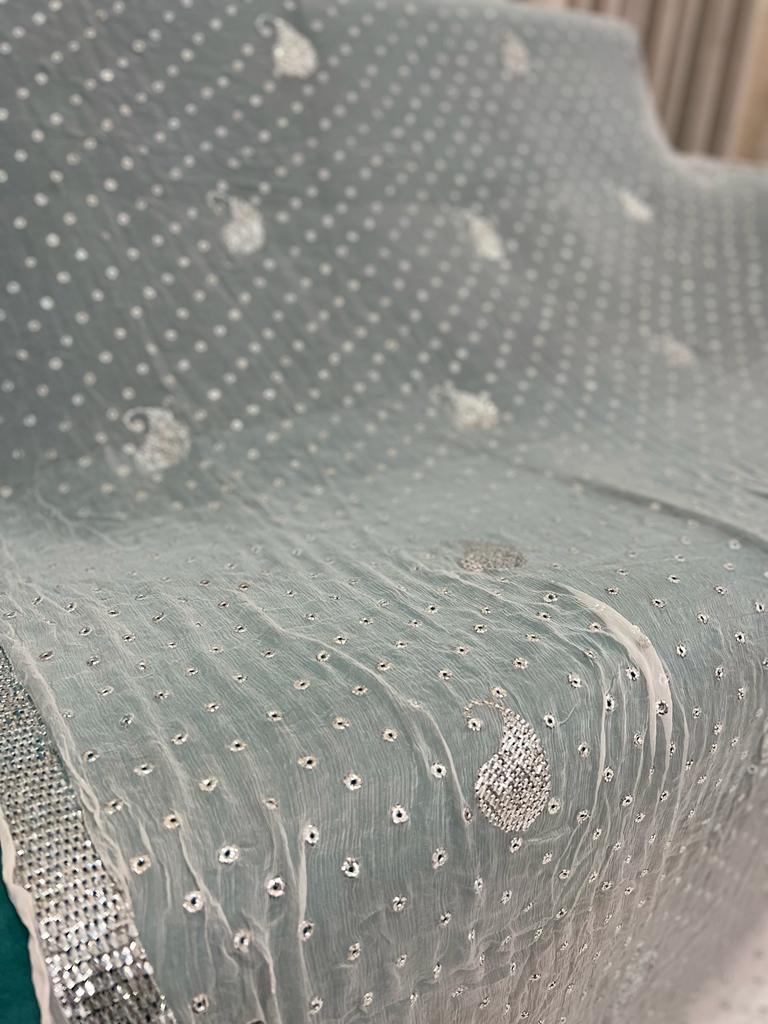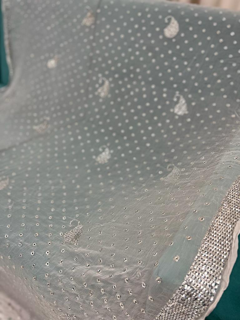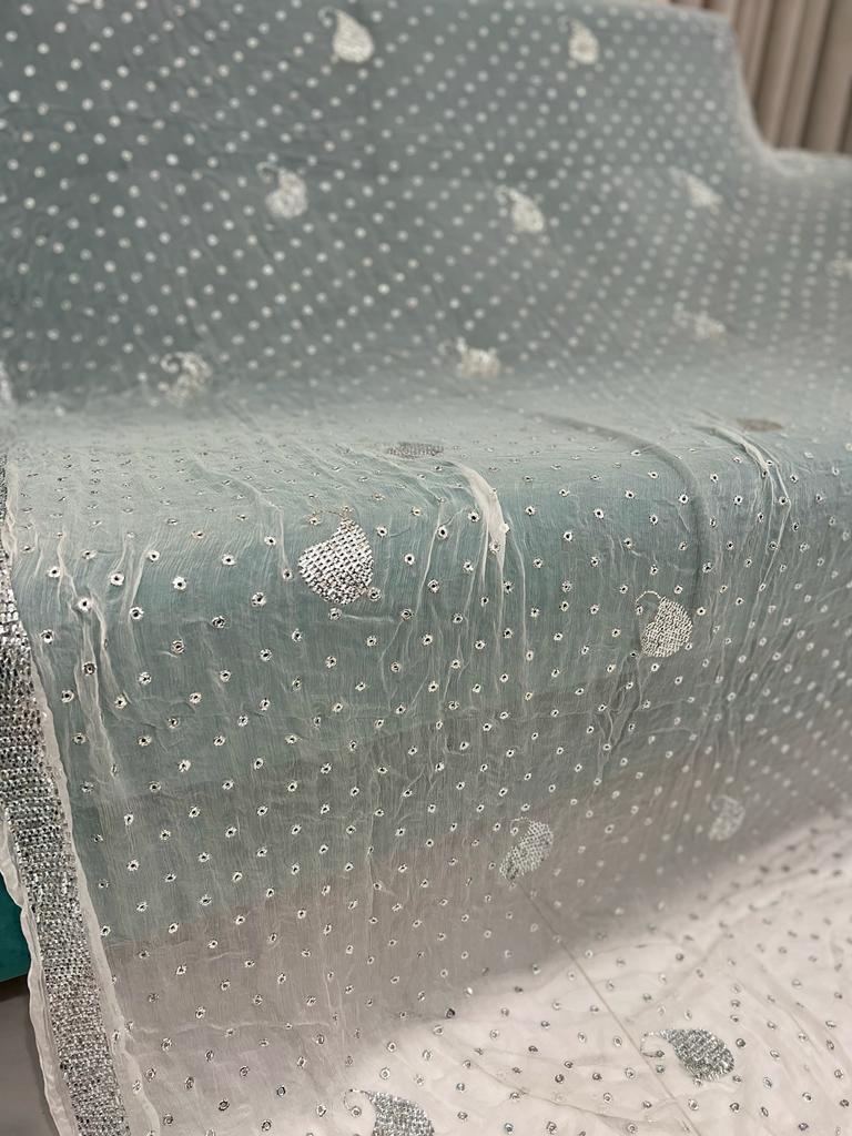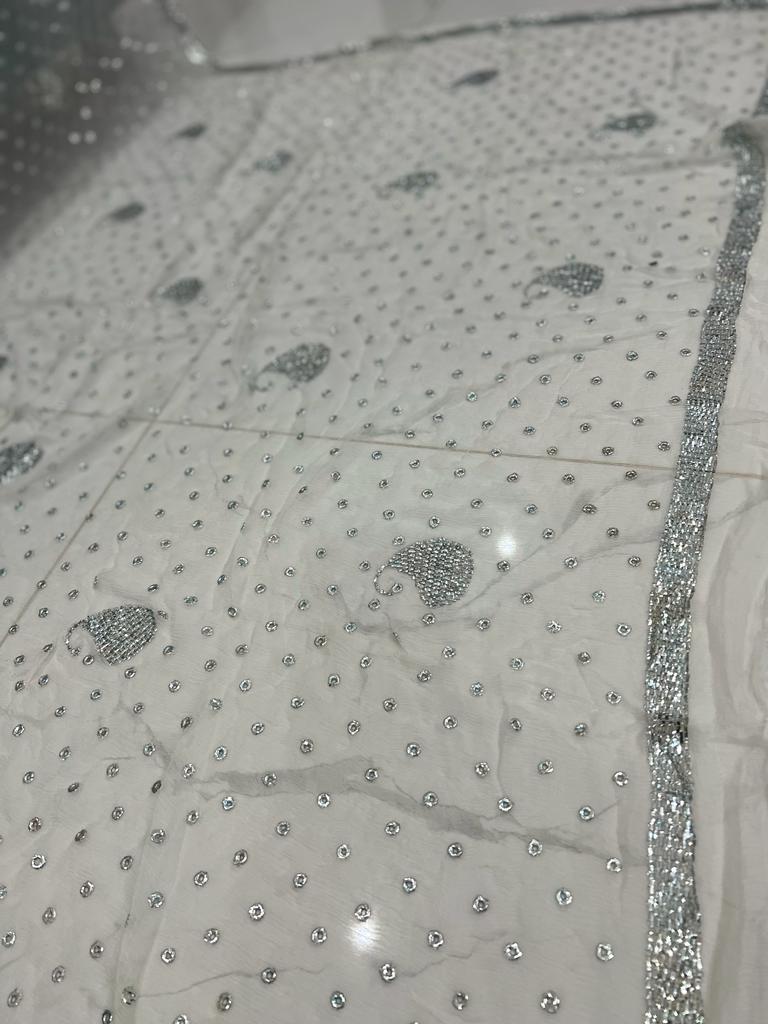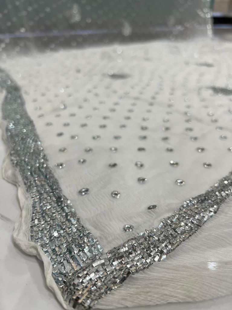 Chandi Patti & Ring Silver Mukaish Work Hand Embroidered dupatta-Dyeable